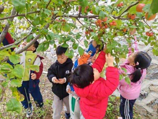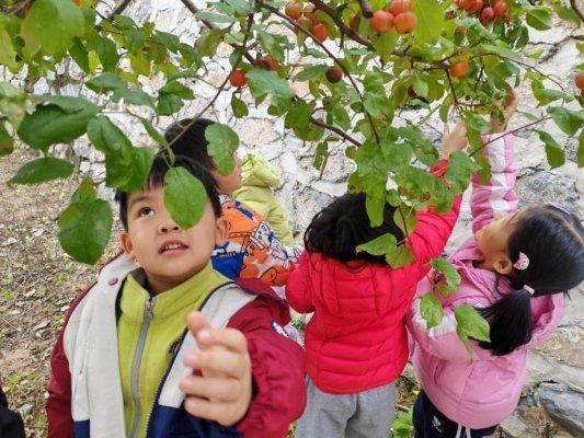 鲁网11月11日讯济南市历下区第三实验幼儿园伴山居园内,海棠果树迎来丰收季。红彤彤的果实缀满枝头,清甜果香弥漫校园,老师提前做好安全防护准备后,便带领孩子们有序开启海棠果采摘活动。