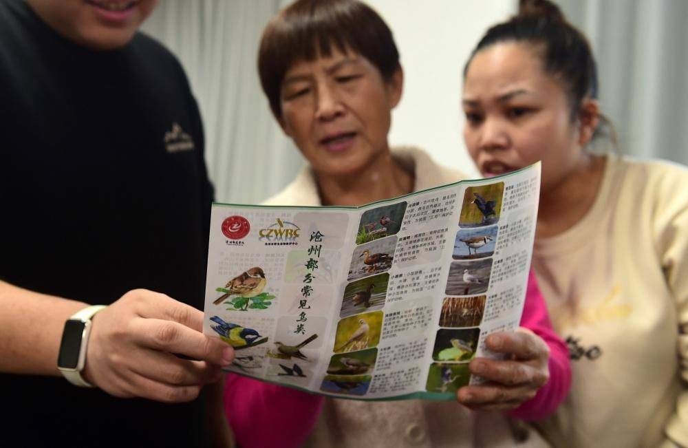 沧州高新区流津社区的居民在聆听常见候鸟的品种介绍。傅新春摄