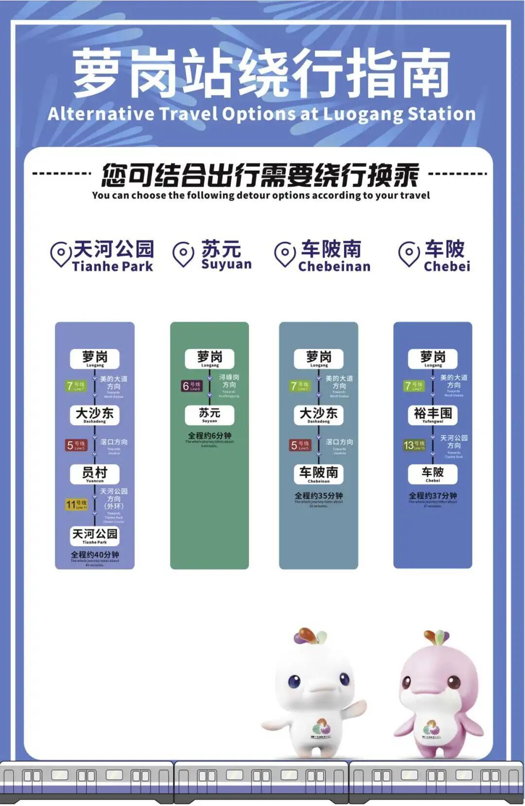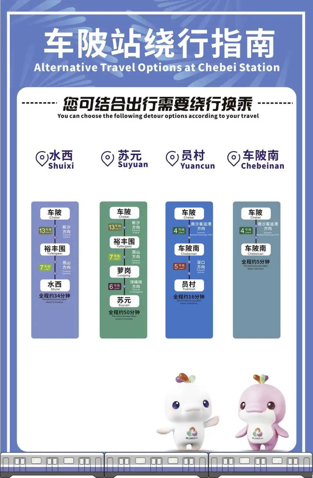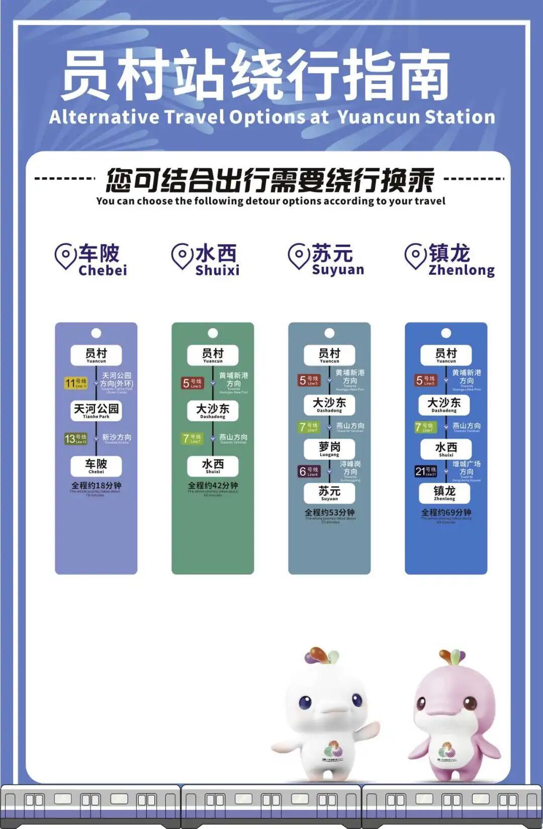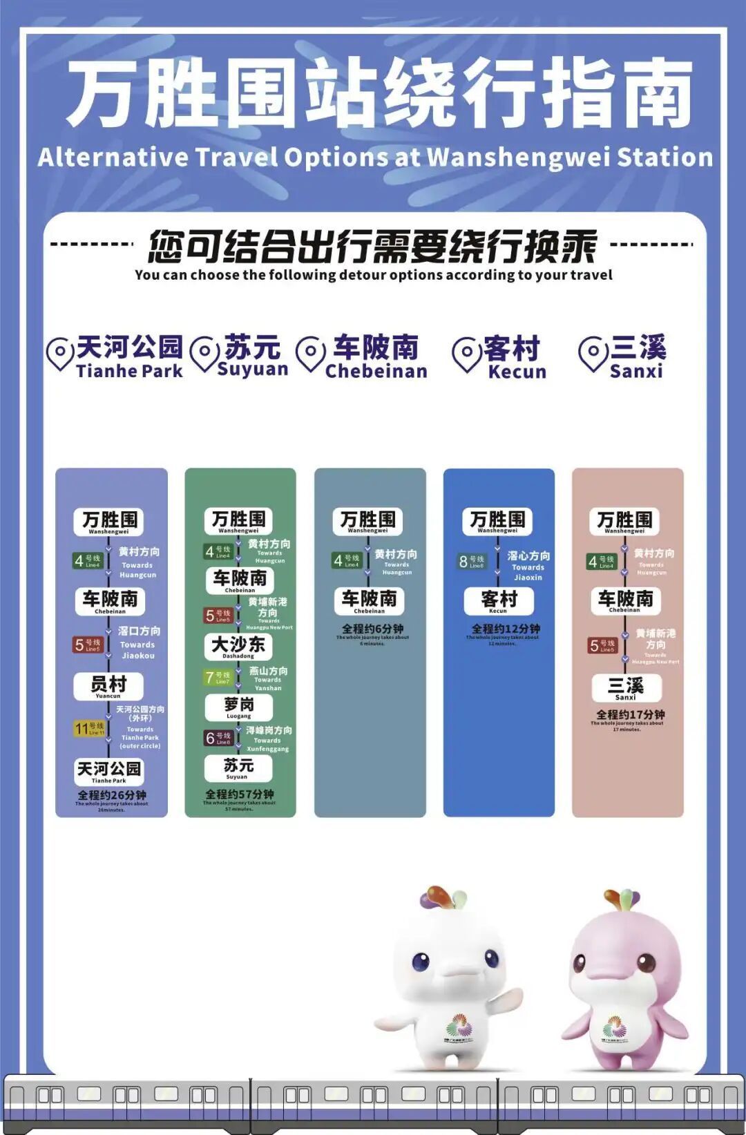 为保障十五运会开幕式疏运工作,11月9日(星期日)开幕式当天,地铁四号线黄村站及二十一号线天河公园至苏元站全天停止对外服务;四号线车陂站22时前停止对外服务,22时后恢复往南沙客运港方向的运营服务。