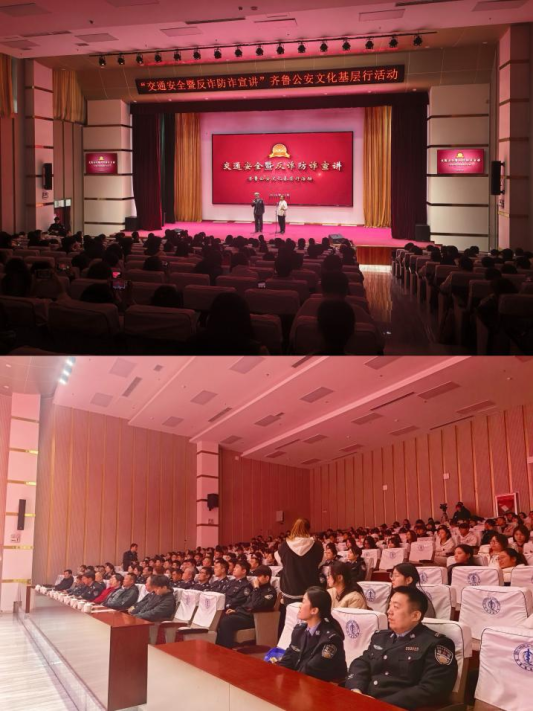 本次演出节目将反诈、交通安全知识通过山东快书、快板、相声、宣讲、小品、歌唱等形式呈现给同学们,现场气氛热烈,同学们纷纷表示看节目的同时深受交通安全、预防诈骗等方面的教育,进一步提高了自身的安全防范意识。